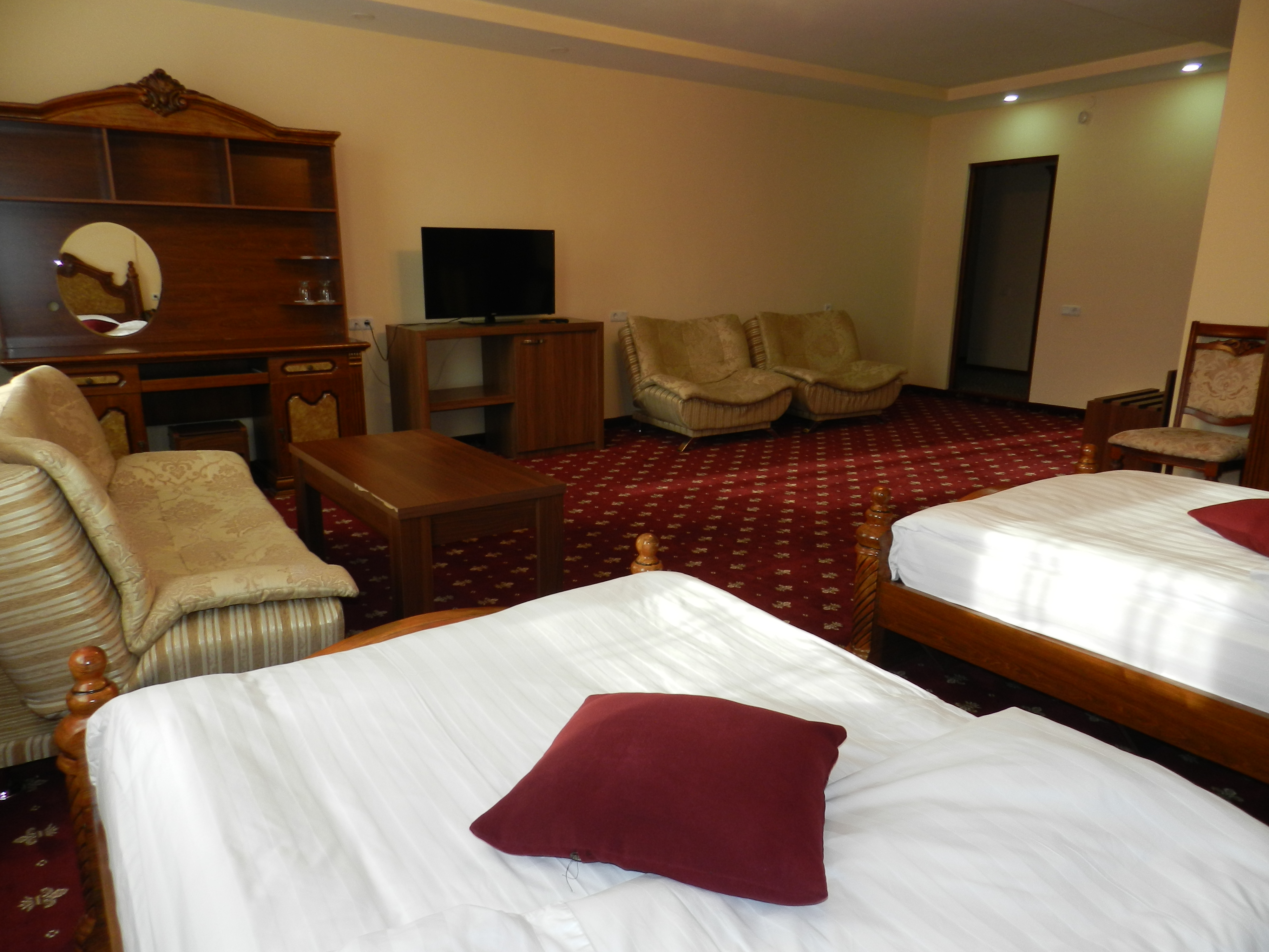 Սենյակը բաղկացած է երկու առանձին սենյակներից, որոնք միմյանցից առանձնացված են դռնոով, ինչն էլ շատ հարմարավետ է, եթե ճանապարհորդում եք երեխաների կամ ընկերների հետ: Հարմարավետ սենյակը կահավորված է երկտեղանի և երկու առանձին տեղանի մահճակալներով: Այն ունի արբանյակային ալիքներով հեռուստացույց, սեյֆ, հեռախոս, օդորակիչ, մինի բար, աշխատասեղան և սուրճի սեղան, բազկաթոռ, լոգարան՝ համապատասխան պարագաներով: